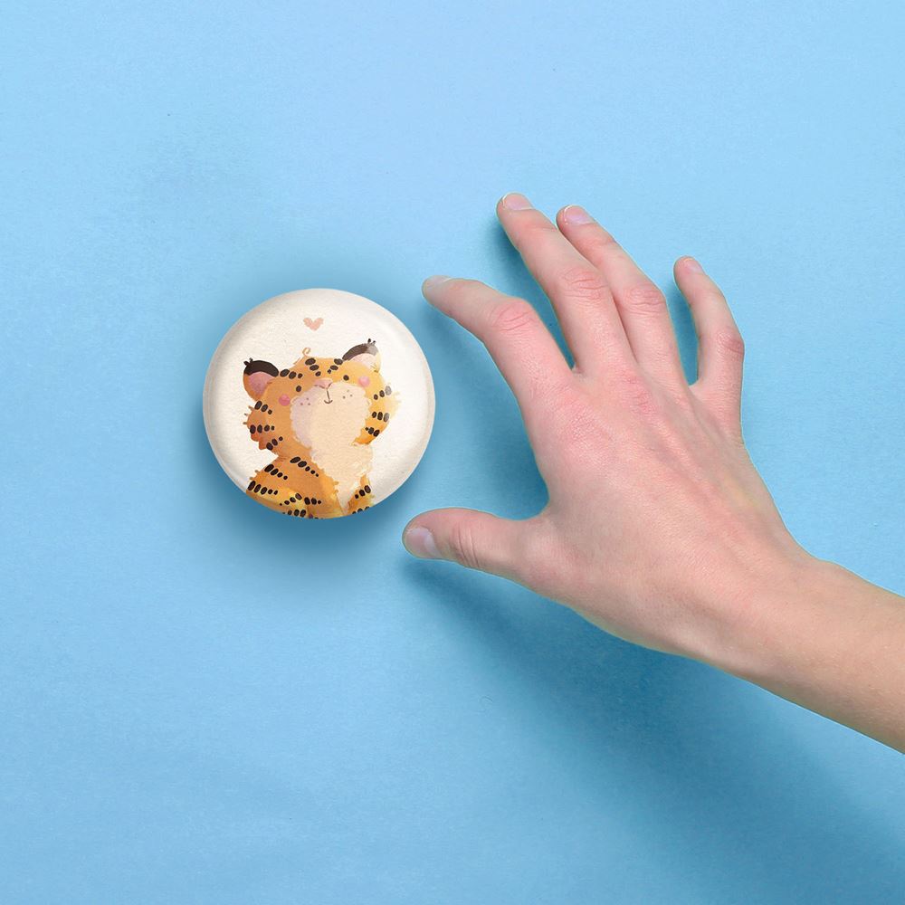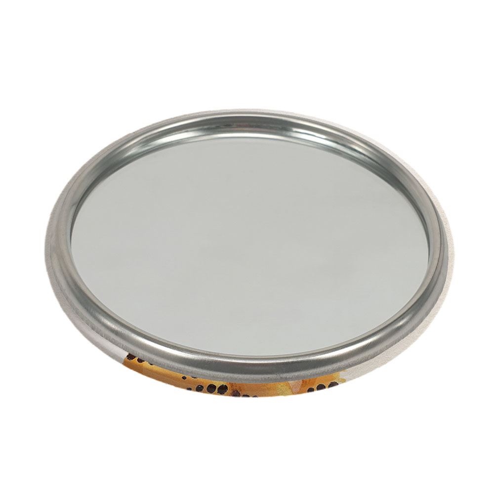 آینه های جیبی سال ببر خندالو دایره ای به قطر 7.5 سانتی متر می باشد که نه خیلی بزرگ و غیر قابل استفاده در کیف آرایشی ست و نه خیلی کوچک که تصویر خاصی در آن مشاهده نشود. سایزی استاندارد و کارآمد دارد و مناسب قرار گیری در کیف لوازم آرایش و کیف های کوچک دستی نیز هست.