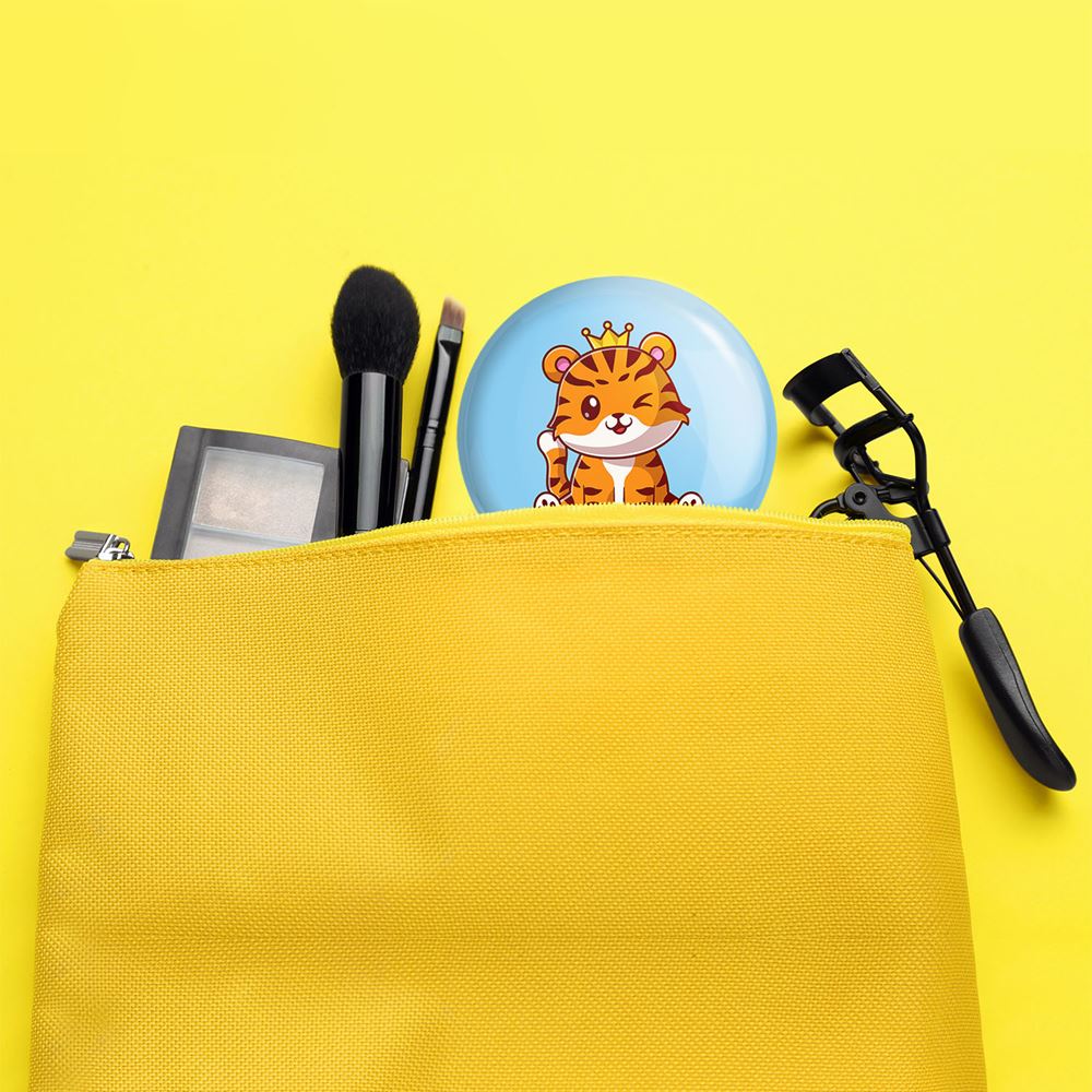 آینه های جیبی سال ببر خندالو دایره ای به قطر 7.5 سانتی متر می باشد که نه خیلی بزرگ و غیر قابل استفاده در کیف آرایشی ست و نه خیلی کوچک که تصویر خاصی در آن مشاهده نشود. سایزی استاندارد و کارآمد دارد و مناسب قرار گیری در کیف لوازم آرایش و کیف های کوچک دستی نیز هست.