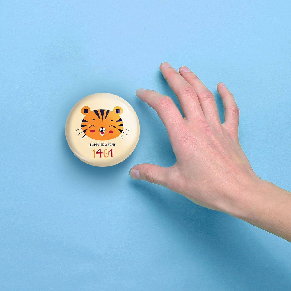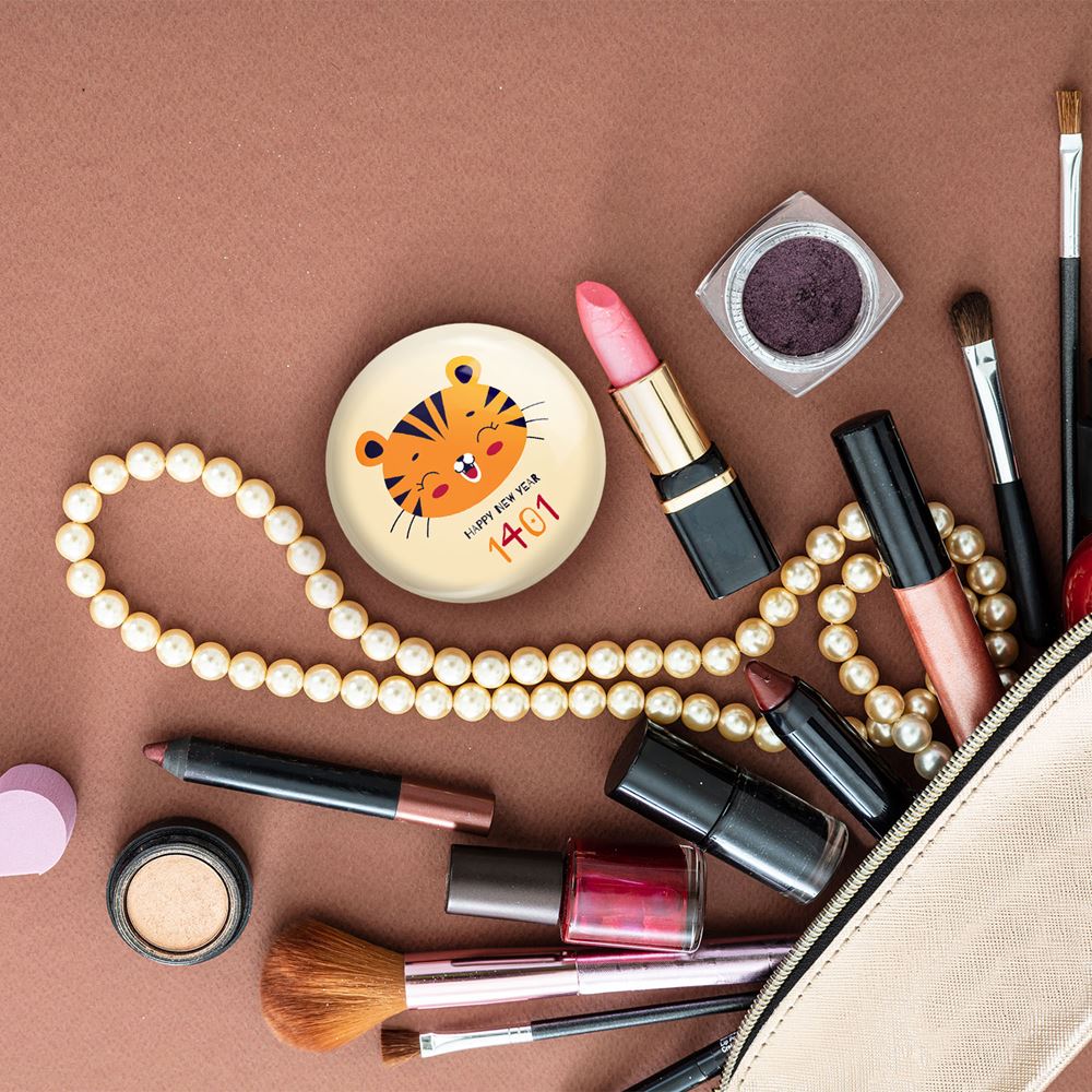 آینه های جیبی سال ببر خندالو دایره ای به قطر 7.5 سانتی متر می باشد که نه خیلی بزرگ و غیر قابل استفاده در کیف آرایشی ست و نه خیلی کوچک که تصویر خاصی در آن مشاهده نشود. سایزی استاندارد و کارآمد دارد و مناسب قرار گیری در کیف لوازم آرایش و کیف های کوچک دستی نیز هست.
