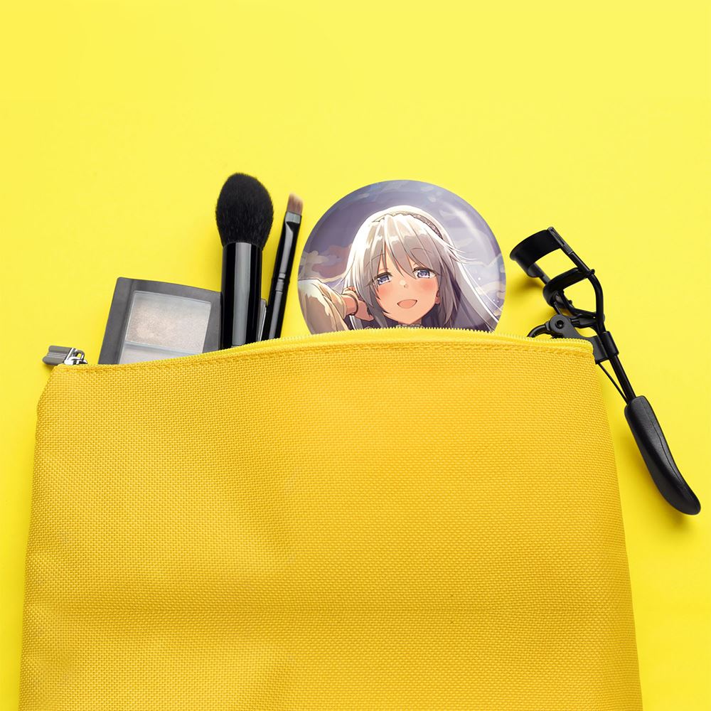 آینه های جیبی ساکاگامی انیمه کلاناد Clannad خندالو دایره ای به قطر 7.5 سانتی متر می باشد که نه خیلی بزرگ و غیر قابل استفاده در کیف آرایشی ست و نه خیلی کوچک که تصویر خاصی در آن مشاهده نشود. سایزی استاندارد و کارآمد دارد و مناسب قرار گیری در کیف لوازم آرایش و کیف های کوچک دستی نیز هست. بدنه ی آینه جیبی ساکاگامی انیمه کلاناد Clannad در قسمتی که آینه را در بر گرفته فلزی بوده و ظاهر براق و بسیار زیبایی دارد. چاپ طرح در پشت آینه بوسیله چاپگرهای دیجیتال شش رنگ با شفافیت و کیفیتی مثال زدنی انجام گرفته و با روکش لمینت حرارتی پوشیده شده که در مقابل آسیب و خط و خش مقاوم بوده و کیفیت بالایی دارد. آینه های جیبی ساکاگامی انیمه کلاناد Clannad خندالو با تنوع طرحی بسیار بالا، سلیقه هر نوع مخاطبی را تامین میکند.