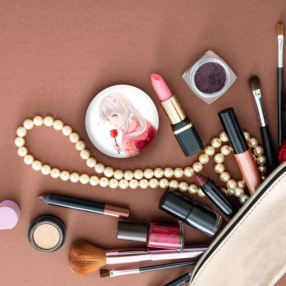 آینه های جیبی ساگیری انیمه ارومانگا سنسی Eromanga Sensei خندالو دایره ای به قطر 7.5 سانتی متر می باشد که نه خیلی بزرگ و غیر قابل استفاده در کیف آرایشی ست و نه خیلی کوچک که تصویر خاصی در آن مشاهده نشود. سایزی استاندارد و کارآمد دارد و مناسب قرار گیری در کیف لوازم آرایش و کیف های کوچک دستی نیز هست.
