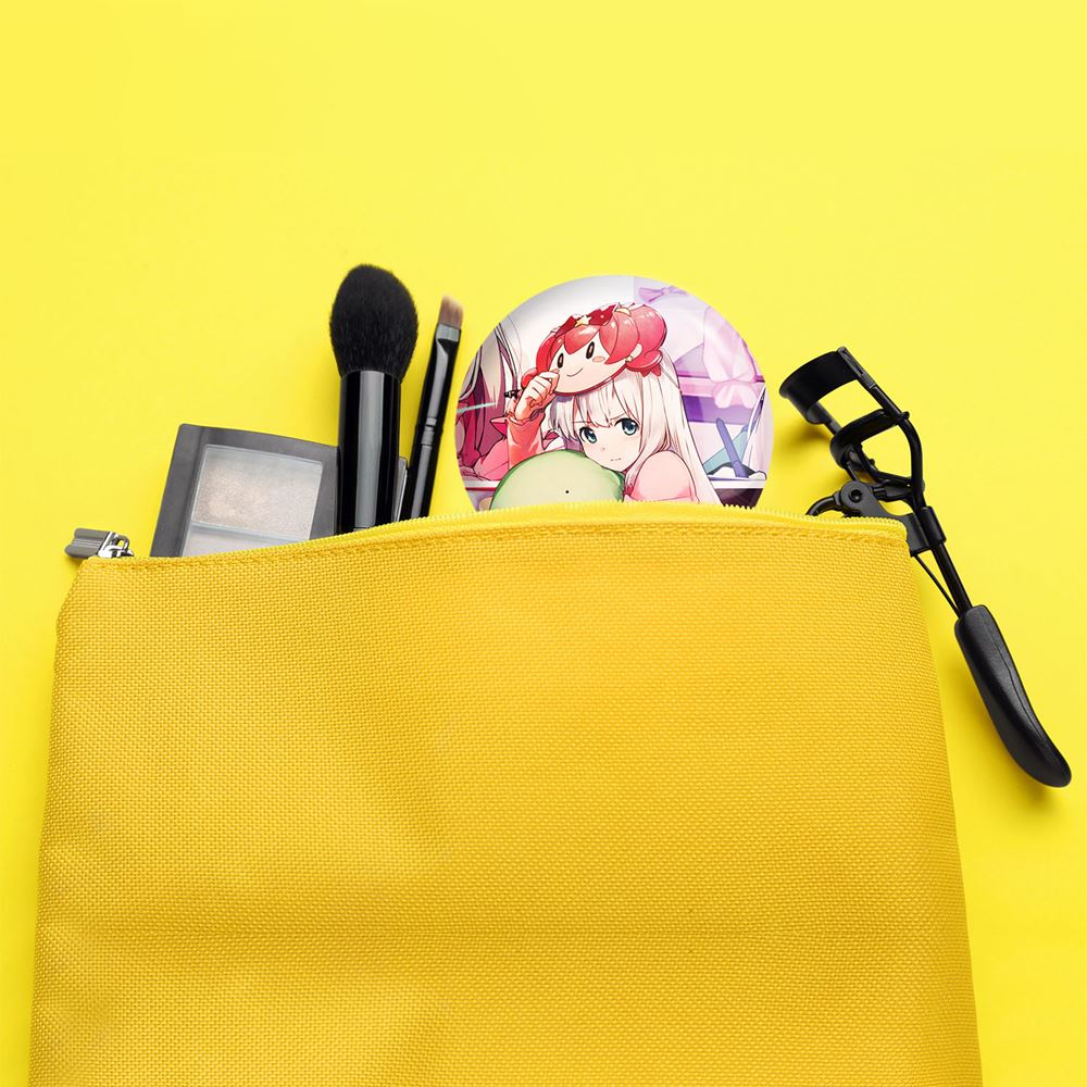 آینه های جیبی ساگیری انیمه ارومانگا سنسی Eromanga Sensei خندالو دایره ای به قطر 7.5 سانتی متر می باشد که نه خیلی بزرگ و غیر قابل استفاده در کیف آرایشی ست و نه خیلی کوچک که تصویر خاصی در آن مشاهده نشود. سایزی استاندارد و کارآمد دارد و مناسب قرار گیری در کیف لوازم آرایش و کیف های کوچک دستی نیز هست.