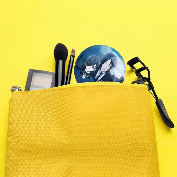 آینه های جیبی سباستین و شیل انیمه خادم سیاه Black Butler خندالو دایره ای به قطر 7.5 سانتی متر می باشد که نه خیلی بزرگ و غیر قابل استفاده در کیف آرایشی ست و نه خیلی کوچک که تصویر خاصی در آن مشاهده نشود. سایزی استاندارد و کارآمد دارد و مناسب قرار گیری در کیف لوازم آرایش و کیف های کوچک دستی نیز هست. بدنه ی آینه جیبی سباستین و شیل انیمه خادم سیاه Black Butler در قسمتی که آینه را در بر گرفته فلزی بوده و ظاهر براق و بسیار زیبایی دارد. چاپ طرح در پشت آینه بوسیله چاپگرهای دیجیتال شش رنگ با شفافیت و کیفیتی مثال زدنی انجام گرفته و با روکش لمینت حرارتی پوشیده شده که در مقابل آسیب و خط و خش مقاوم بوده و کیفیت بالایی دارد. آینه های جیبی سباستین و شیل انیمه خادم سیاه Black Butler خندالو با تنوع طرحی بسیار بالا، سلیقه هر نوع مخاطبی را تامین میکند.