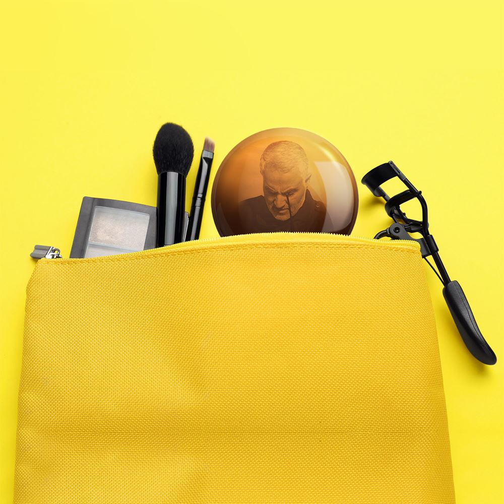 آینه های جیبی سردار قاسم سلیمانی خندالو دایره ای به قطر 7.5 سانتی متر می باشد که نه خیلی بزرگ و غیر قابل استفاده در کیف آرایشی ست و نه خیلی کوچک که تصویر خاصی در آن مشاهده نشود. سایزی استاندارد و کارآمد دارد و مناسب قرار گیری در کیف لوازم آرایش و کیف های کوچک دستی نیز هست.