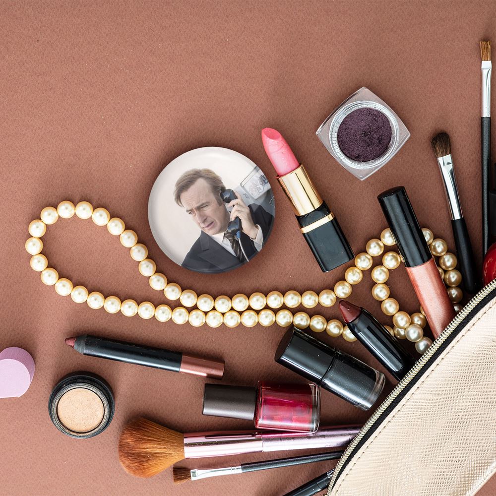 آینه های جیبی سریال بهتره با سال تماس بگیری Better Call Saul خندالو دایره ای به قطر 7.5 سانتی متر می باشد که نه خیلی بزرگ و غیر قابل استفاده در کیف آرایشی ست و نه خیلی کوچک که تصویر خاصی در آن مشاهده نشود. سایزی استاندارد و کارآمد دارد و مناسب قرار گیری در کیف لوازم آرایش و کیف های کوچک دستی نیز هست.