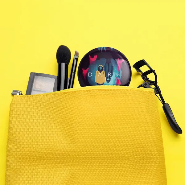 آینه های جیبی سریال دارک Dark خندالو دایره ای به قطر 7.5 سانتی متر می باشد که نه خیلی بزرگ و غیر قابل استفاده در کیف آرایشی ست و نه خیلی کوچک که تصویر خاصی در آن مشاهده نشود. سایزی استاندارد و کارآمد دارد و مناسب قرار گیری در کیف لوازم آرایش و کیف های کوچک دستی نیز هست.