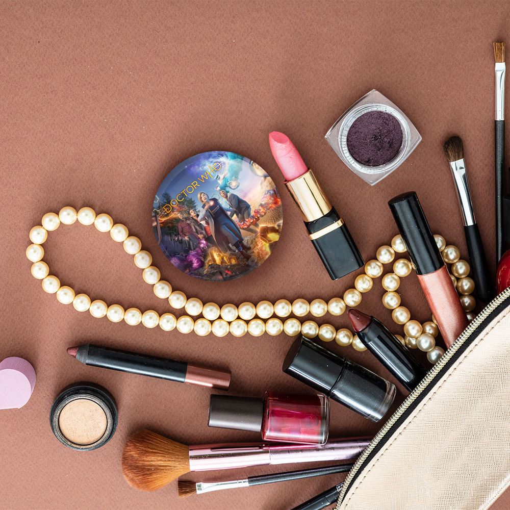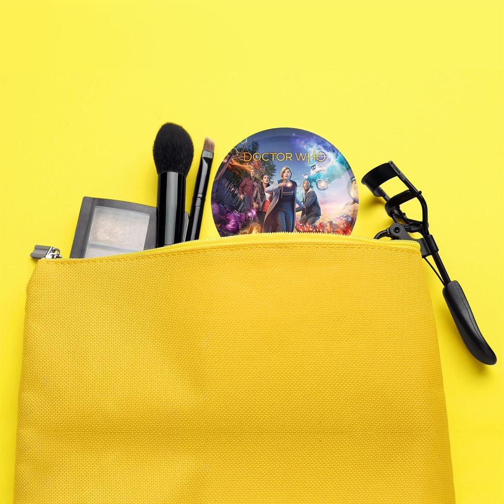 آینه های جیبی سریال داکتر هو Doctor Who خندالو دایره ای به قطر 7.5 سانتی متر می باشد که نه خیلی بزرگ و غیر قابل استفاده در کیف آرایشی ست و نه خیلی کوچک که تصویر خاصی در آن مشاهده نشود. سایزی استاندارد و کارآمد دارد و مناسب قرار گیری در کیف لوازم آرایش و کیف های کوچک دستی نیز هست.