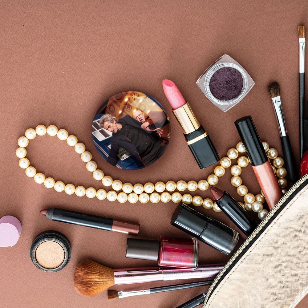 آینه های جیبی سریال داکتر هو Doctor Who خندالو دایره ای به قطر 7.5 سانتی متر می باشد که نه خیلی بزرگ و غیر قابل استفاده در کیف آرایشی ست و نه خیلی کوچک که تصویر خاصی در آن مشاهده نشود. سایزی استاندارد و کارآمد دارد و مناسب قرار گیری در کیف لوازم آرایش و کیف های کوچک دستی نیز هست.
