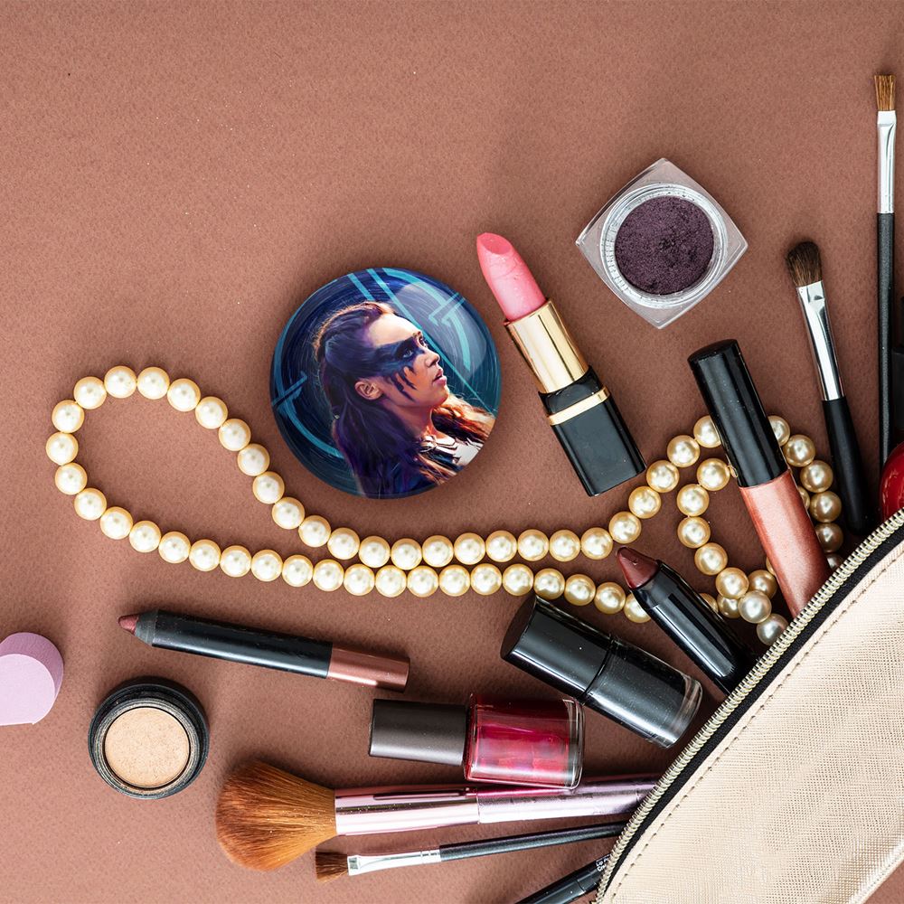 آینه های جیبی سریال صد نفر The 100 خندالو دایره ای به قطر 7.5 سانتی متر می باشد که نه خیلی بزرگ و غیر قابل استفاده در کیف آرایشی ست و نه خیلی کوچک که تصویر خاصی در آن مشاهده نشود. سایزی استاندارد و کارآمد دارد و مناسب قرار گیری در کیف لوازم آرایش و کیف های کوچک دستی نیز هست.