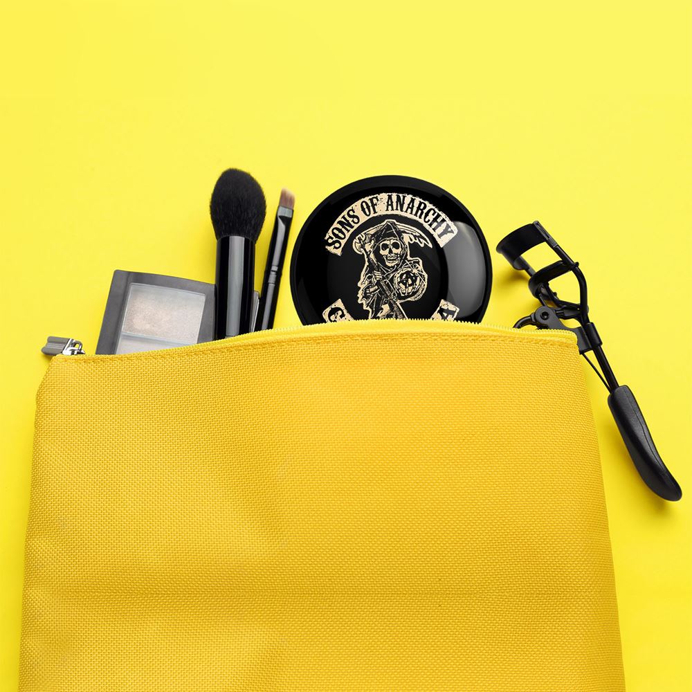 آینه های جیبی سریال فرزندان آشوب خندالو دایره ای به قطر 7.5 سانتی متر می باشد که نه خیلی بزرگ و غیر قابل استفاده در کیف آرایشی ست و نه خیلی کوچک که تصویر خاصی در آن مشاهده نشود. سایزی استاندارد و کارآمد دارد و مناسب قرار گیری در کیف لوازم آرایش و کیف های کوچک دستی نیز هست.