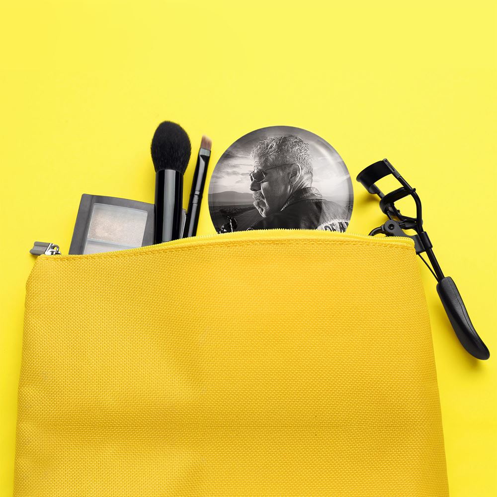 آینه های جیبی سریال فرزندان آشوب خندالو دایره ای به قطر 7.5 سانتی متر می باشد که نه خیلی بزرگ و غیر قابل استفاده در کیف آرایشی ست و نه خیلی کوچک که تصویر خاصی در آن مشاهده نشود. سایزی استاندارد و کارآمد دارد و مناسب قرار گیری در کیف لوازم آرایش و کیف های کوچک دستی نیز هست.