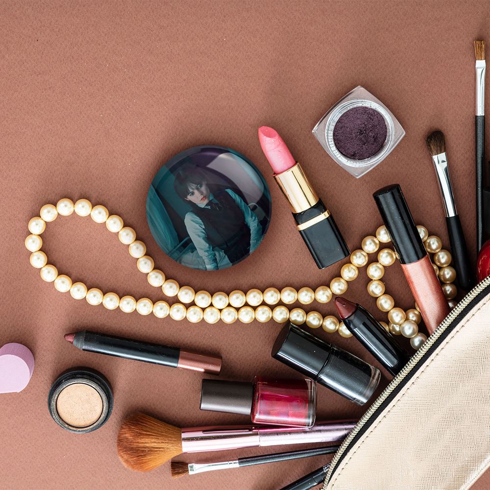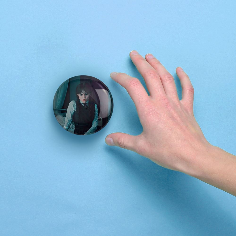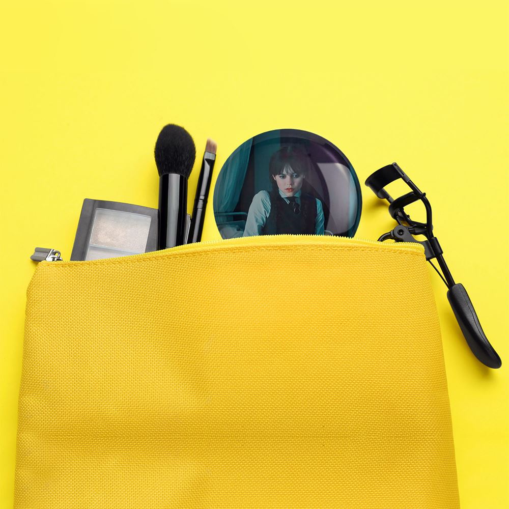 آینه های جیبی سریال ونزدی Wednesday خندالو دایره ای به قطر 7.5 سانتی متر می باشد که نه خیلی بزرگ و غیر قابل استفاده در کیف آرایشی ست و نه خیلی کوچک که تصویر خاصی در آن مشاهده نشود. سایزی استاندارد و کارآمد دارد و مناسب قرار گیری در کیف لوازم آرایش و کیف های کوچک دستی نیز هست.