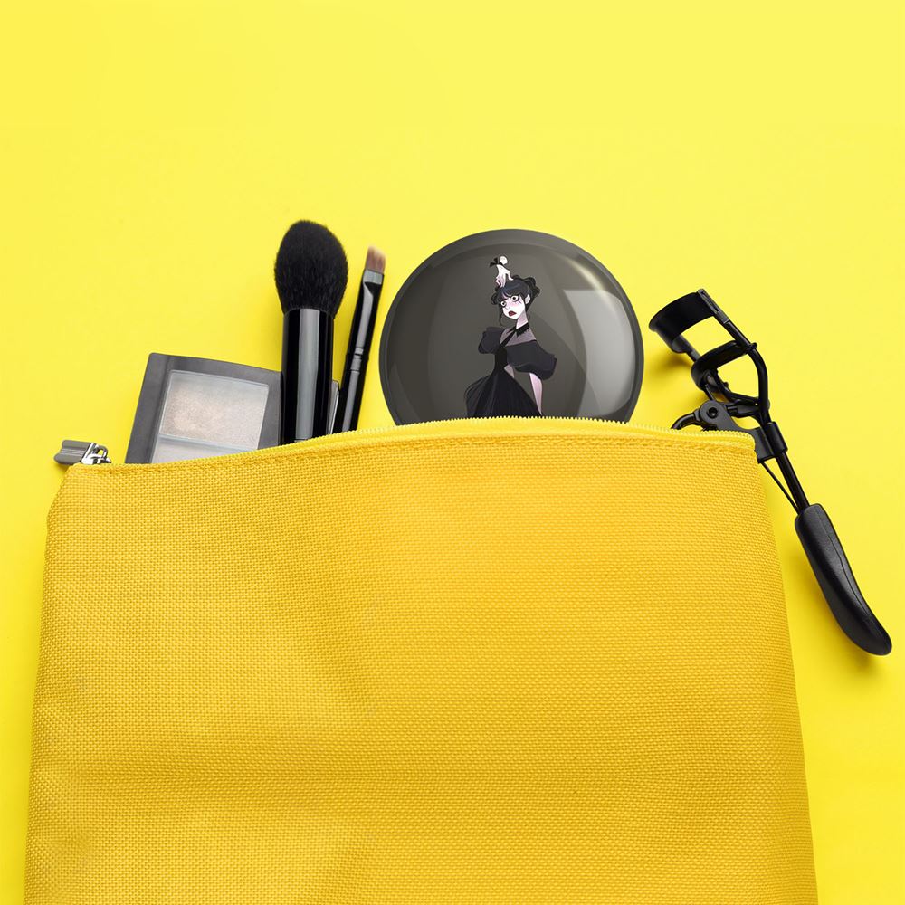 آینه های جیبی سریال ونزدی Wednesday خندالو دایره ای به قطر 7.5 سانتی متر می باشد که نه خیلی بزرگ و غیر قابل استفاده در کیف آرایشی ست و نه خیلی کوچک که تصویر خاصی در آن مشاهده نشود. سایزی استاندارد و کارآمد دارد و مناسب قرار گیری در کیف لوازم آرایش و کیف های کوچک دستی نیز هست.