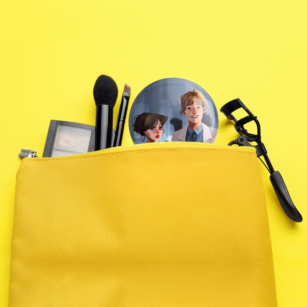 آینه های جیبی سریال ونزدی Wednesday خندالو دایره ای به قطر 7.5 سانتی متر می باشد که نه خیلی بزرگ و غیر قابل استفاده در کیف آرایشی ست و نه خیلی کوچک که تصویر خاصی در آن مشاهده نشود. سایزی استاندارد و کارآمد دارد و مناسب قرار گیری در کیف لوازم آرایش و کیف های کوچک دستی نیز هست.
