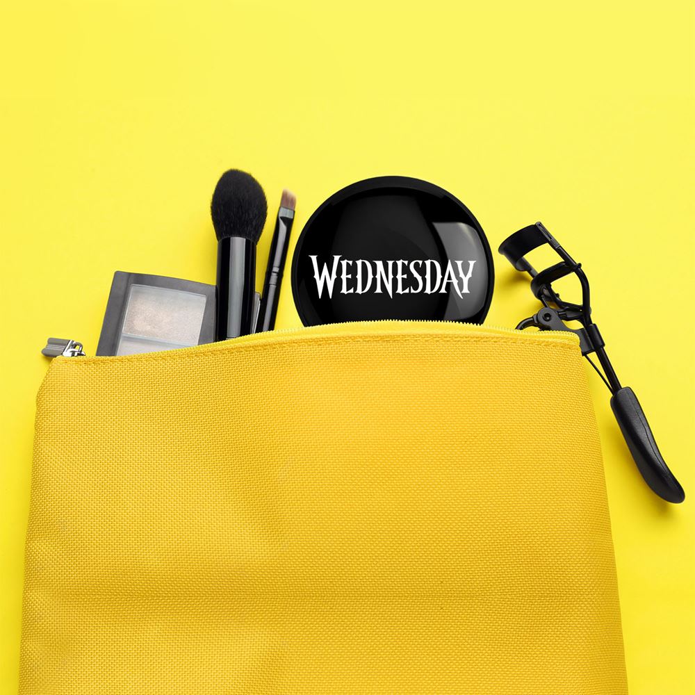 آینه های جیبی سریال ونزدی Wednesday خندالو دایره ای به قطر 7.5 سانتی متر می باشد که نه خیلی بزرگ و غیر قابل استفاده در کیف آرایشی ست و نه خیلی کوچک که تصویر خاصی در آن مشاهده نشود. سایزی استاندارد و کارآمد دارد و مناسب قرار گیری در کیف لوازم آرایش و کیف های کوچک دستی نیز هست.