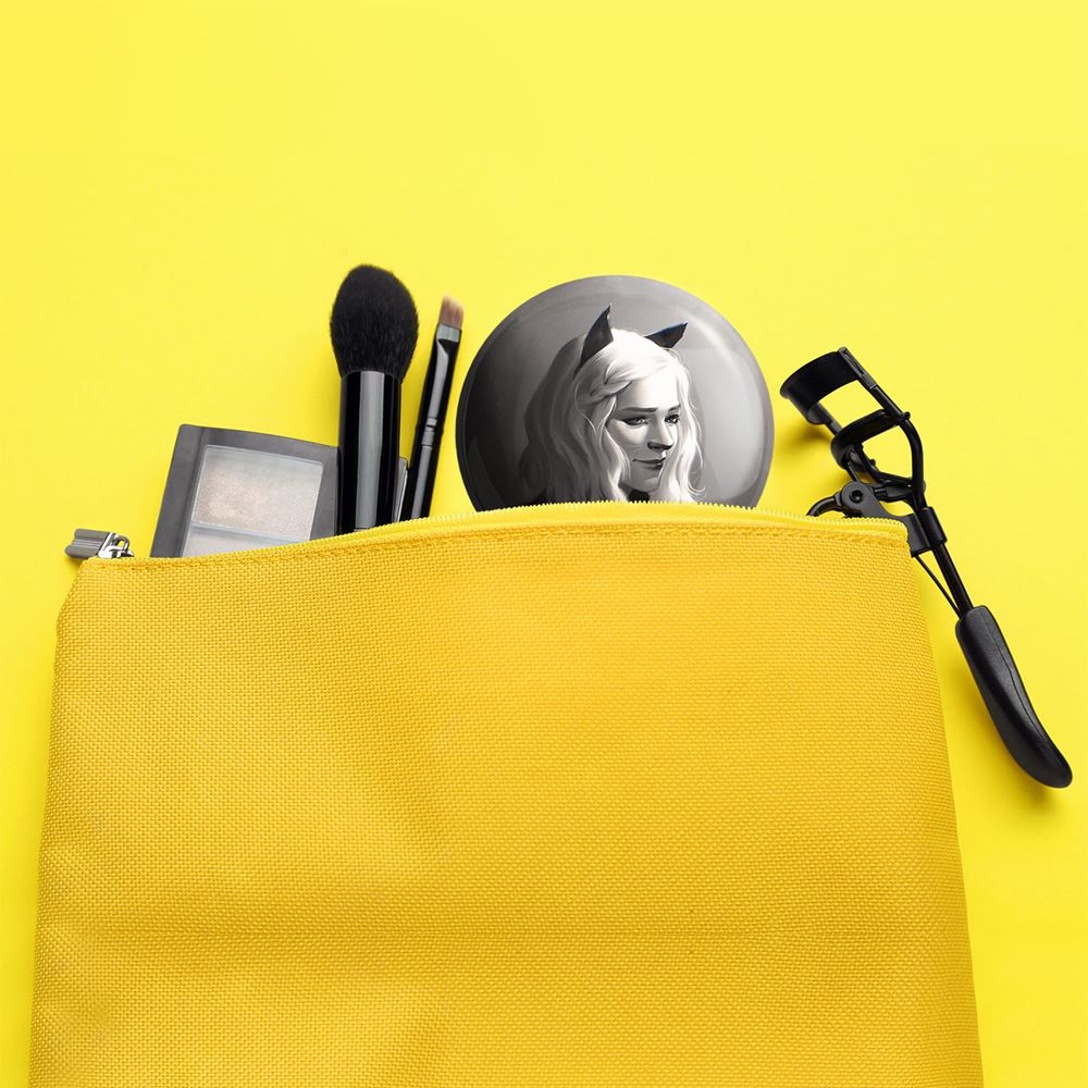 آینه های جیبی سریال ونزدی Wednesday خندالو دایره ای به قطر 7.5 سانتی متر می باشد که نه خیلی بزرگ و غیر قابل استفاده در کیف آرایشی ست و نه خیلی کوچک که تصویر خاصی در آن مشاهده نشود. سایزی استاندارد و کارآمد دارد و مناسب قرار گیری در کیف لوازم آرایش و کیف های کوچک دستی نیز هست.