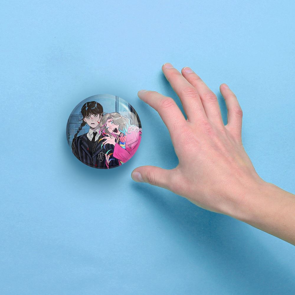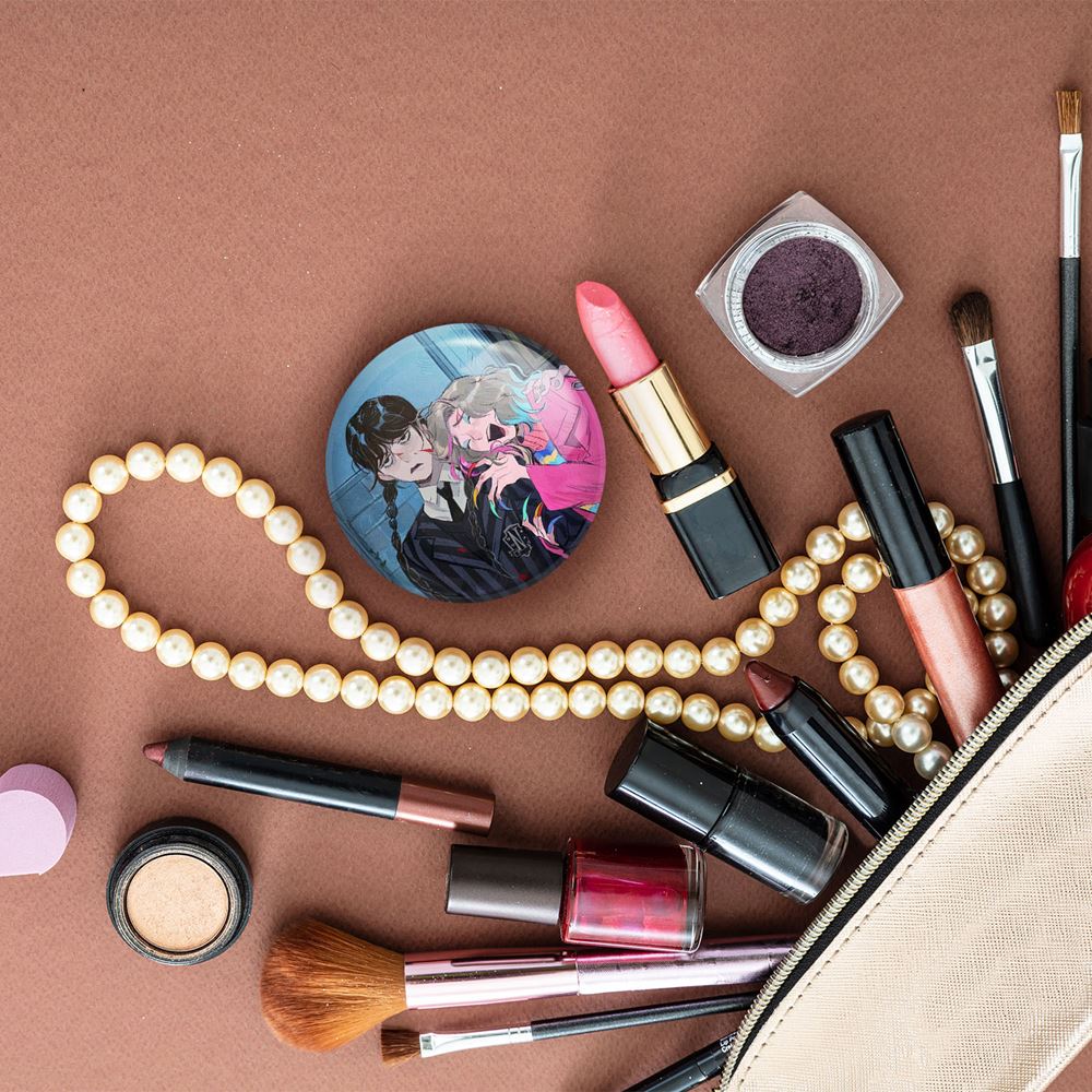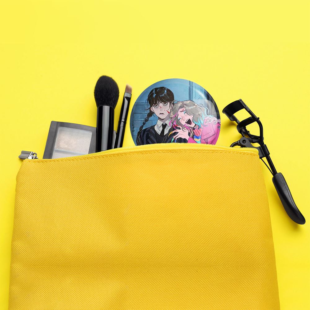آینه های جیبی سریال ونزدی Wednesday خندالو دایره ای به قطر 7.5 سانتی متر می باشد که نه خیلی بزرگ و غیر قابل استفاده در کیف آرایشی ست و نه خیلی کوچک که تصویر خاصی در آن مشاهده نشود. سایزی استاندارد و کارآمد دارد و مناسب قرار گیری در کیف لوازم آرایش و کیف های کوچک دستی نیز هست.