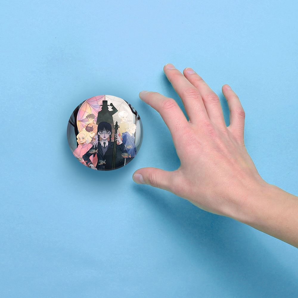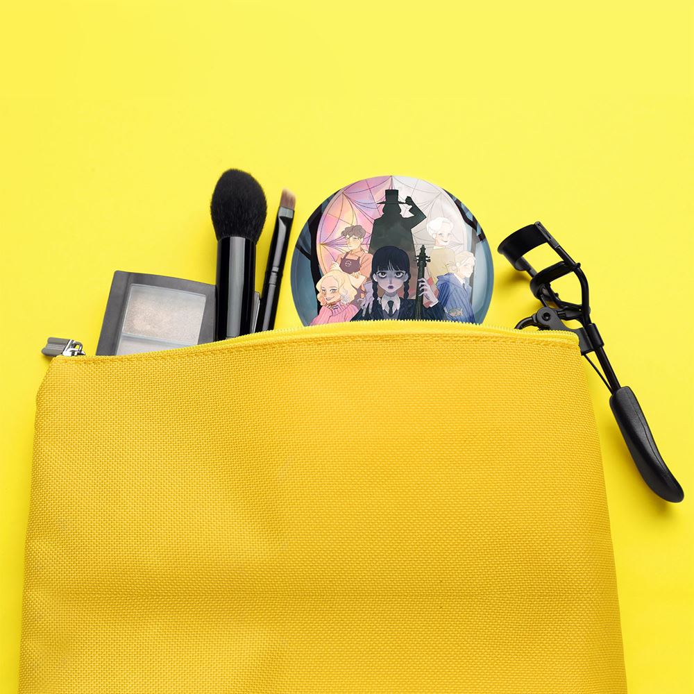 آینه های جیبی سریال ونزدی Wednesday خندالو دایره ای به قطر 7.5 سانتی متر می باشد که نه خیلی بزرگ و غیر قابل استفاده در کیف آرایشی ست و نه خیلی کوچک که تصویر خاصی در آن مشاهده نشود. سایزی استاندارد و کارآمد دارد و مناسب قرار گیری در کیف لوازم آرایش و کیف های کوچک دستی نیز هست.