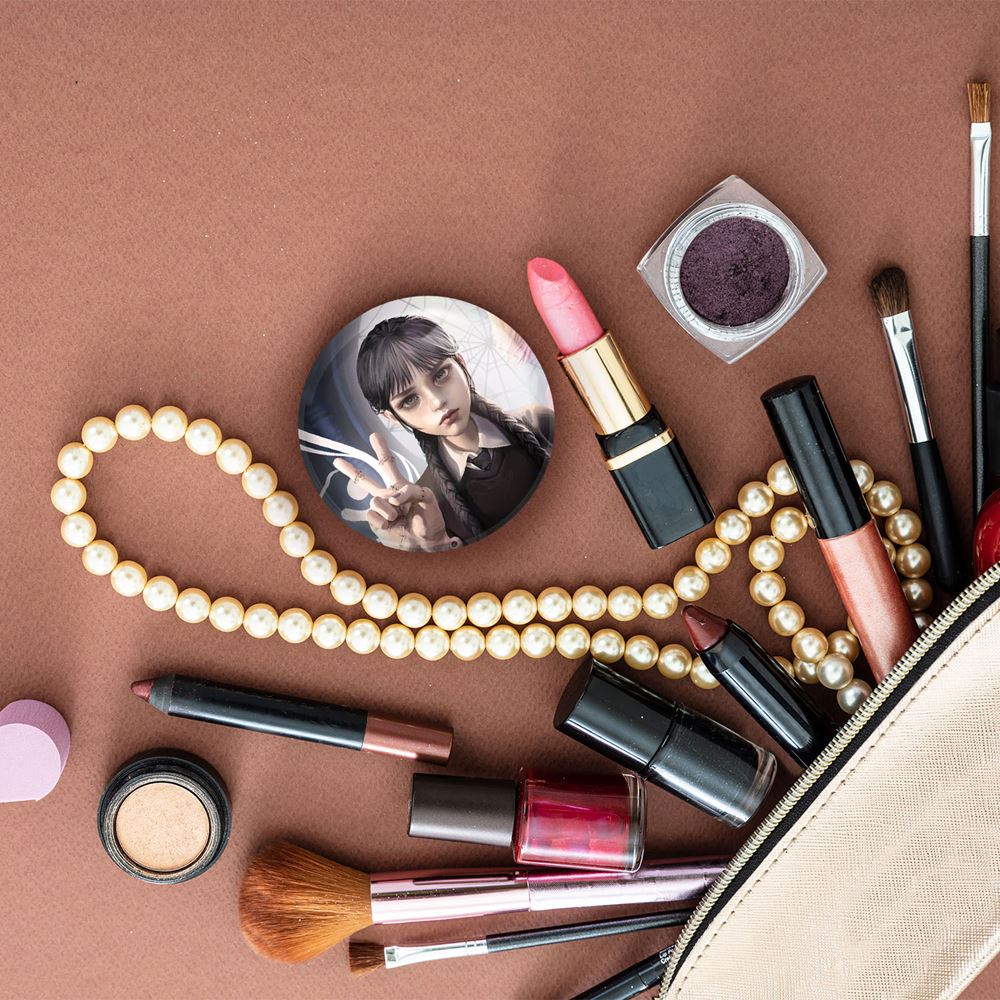 آینه های جیبی سریال ونزدی Wednesday خندالو دایره ای به قطر 7.5 سانتی متر می باشد که نه خیلی بزرگ و غیر قابل استفاده در کیف آرایشی ست و نه خیلی کوچک که تصویر خاصی در آن مشاهده نشود. سایزی استاندارد و کارآمد دارد و مناسب قرار گیری در کیف لوازم آرایش و کیف های کوچک دستی نیز هست.