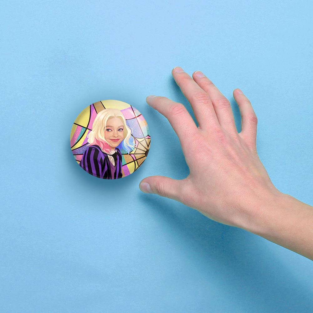 آینه های جیبی سریال ونزدی Wednesday خندالو دایره ای به قطر 7.5 سانتی متر می باشد که نه خیلی بزرگ و غیر قابل استفاده در کیف آرایشی ست و نه خیلی کوچک که تصویر خاصی در آن مشاهده نشود. سایزی استاندارد و کارآمد دارد و مناسب قرار گیری در کیف لوازم آرایش و کیف های کوچک دستی نیز هست.