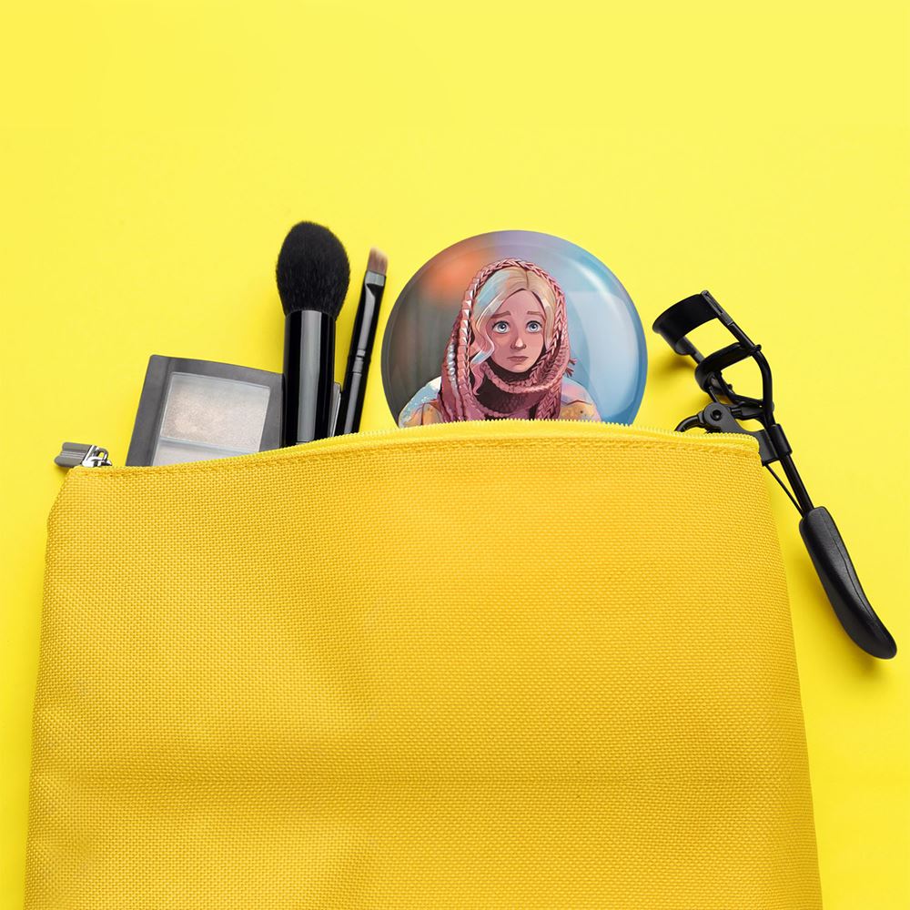 آینه های جیبی سریال ونزدی Wednesday خندالو دایره ای به قطر 7.5 سانتی متر می باشد که نه خیلی بزرگ و غیر قابل استفاده در کیف آرایشی ست و نه خیلی کوچک که تصویر خاصی در آن مشاهده نشود. سایزی استاندارد و کارآمد دارد و مناسب قرار گیری در کیف لوازم آرایش و کیف های کوچک دستی نیز هست.