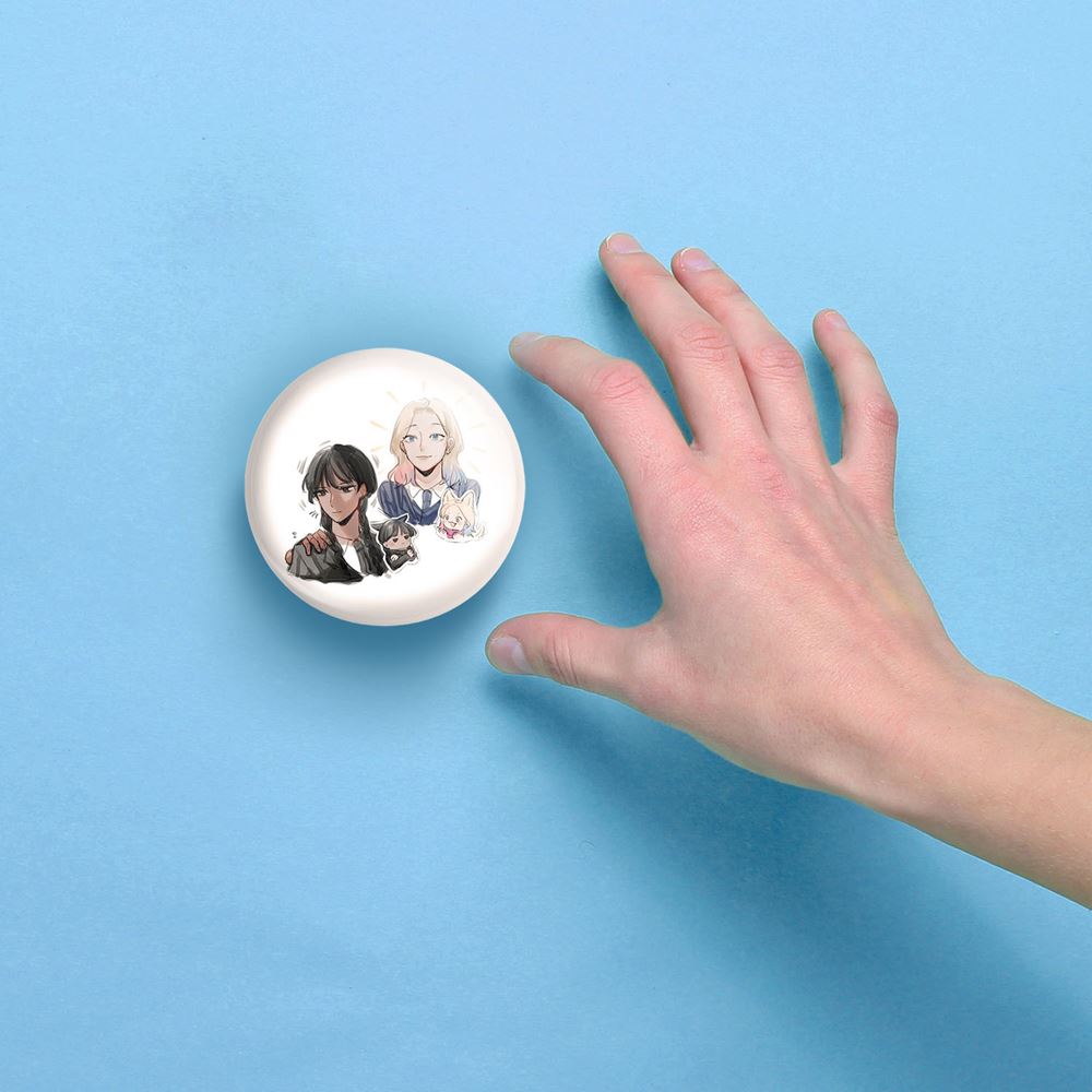 آینه های جیبی سریال ونزدی Wednesday خندالو دایره ای به قطر 7.5 سانتی متر می باشد که نه خیلی بزرگ و غیر قابل استفاده در کیف آرایشی ست و نه خیلی کوچک که تصویر خاصی در آن مشاهده نشود. سایزی استاندارد و کارآمد دارد و مناسب قرار گیری در کیف لوازم آرایش و کیف های کوچک دستی نیز هست.