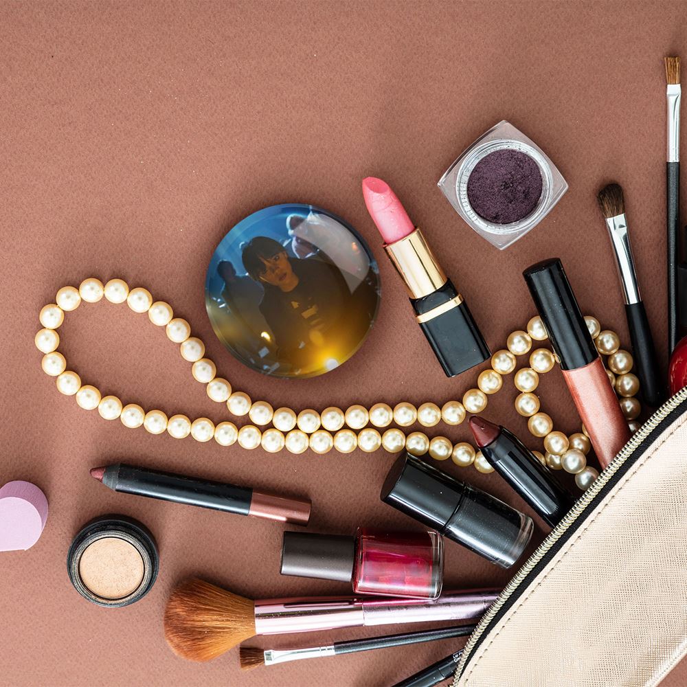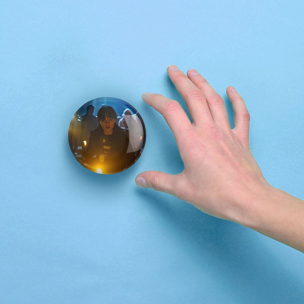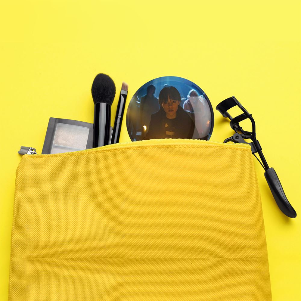 آینه های جیبی سریال ونزدی Wednesday خندالو دایره ای به قطر 7.5 سانتی متر می باشد که نه خیلی بزرگ و غیر قابل استفاده در کیف آرایشی ست و نه خیلی کوچک که تصویر خاصی در آن مشاهده نشود. سایزی استاندارد و کارآمد دارد و مناسب قرار گیری در کیف لوازم آرایش و کیف های کوچک دستی نیز هست.