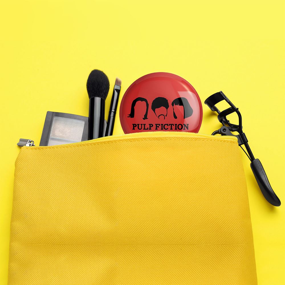 آینه های جیبی سریال پالپ فیکشن Pulp Fiction خندالو دایره ای به قطر 7.5 سانتی متر می باشد که نه خیلی بزرگ و غیر قابل استفاده در کیف آرایشی ست و نه خیلی کوچک که تصویر خاصی در آن مشاهده نشود. سایزی استاندارد و کارآمد دارد و مناسب قرار گیری در کیف لوازم آرایش و کیف های کوچک دستی نیز هست.