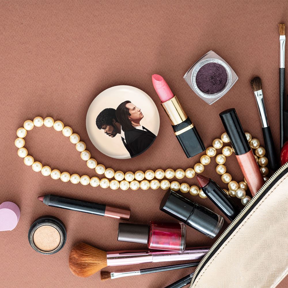 آینه های جیبی سریال پالپ فیکشن Pulp Fiction خندالو دایره ای به قطر 7.5 سانتی متر می باشد که نه خیلی بزرگ و غیر قابل استفاده در کیف آرایشی ست و نه خیلی کوچک که تصویر خاصی در آن مشاهده نشود. سایزی استاندارد و کارآمد دارد و مناسب قرار گیری در کیف لوازم آرایش و کیف های کوچک دستی نیز هست.