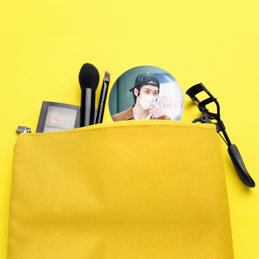 آینه های جیبی سهون گروه اکسو EXO خندالو دایره ای به قطر 7.5 سانتی متر می باشد که نه خیلی بزرگ و غیر قابل استفاده در کیف آرایشی ست و نه خیلی کوچک که تصویر خاصی در آن مشاهده نشود. سایزی استاندارد و کارآمد دارد و مناسب قرار گیری در کیف لوازم آرایش و کیف های کوچک دستی نیز هست.