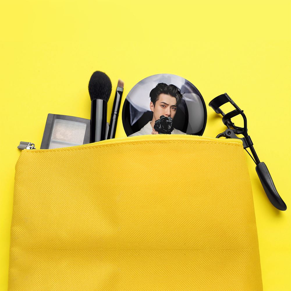 آینه های جیبی سهون گروه اکسو EXO خندالو دایره ای به قطر 7.5 سانتی متر می باشد که نه خیلی بزرگ و غیر قابل استفاده در کیف آرایشی ست و نه خیلی کوچک که تصویر خاصی در آن مشاهده نشود. سایزی استاندارد و کارآمد دارد و مناسب قرار گیری در کیف لوازم آرایش و کیف های کوچک دستی نیز هست. بدنه ی آینه جیبی سهون گروه اکسو EXO در قسمتی که آینه را در بر گرفته فلزی بوده و ظاهر براق و بسیار زیبایی دارد. چاپ طرح در پشت آینه بوسیله چاپگرهای دیجیتال شش رنگ با شفافیت و کیفیتی مثال زدنی انجام گرفته و با روکش لمینت حرارتی پوشیده شده که در مقابل آسیب و خط و خش مقاوم بوده و کیفیت بالایی دارد. آینه های جیبی سهون گروه اکسو EXO خندالو با تنوع طرحی بسیار بالا، سلیقه هر نوع مخاطبی را تامین میکند.