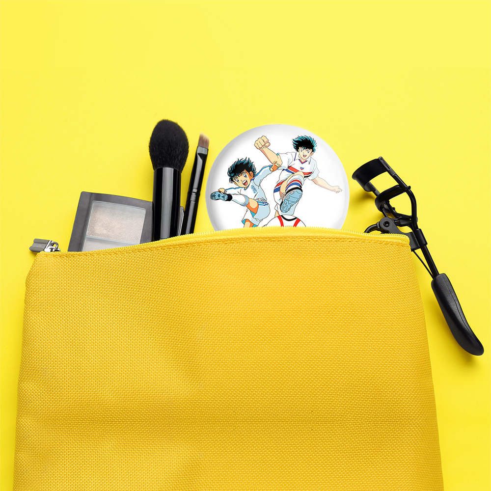 آینه های جیبی سوباسا فوتبالیست ها خندالو دایره ای به قطر 7.5 سانتی متر می باشد که نه خیلی بزرگ و غیر قابل استفاده در کیف آرایشی ست و نه خیلی کوچک که تصویر خاصی در آن مشاهده نشود. سایزی استاندارد و کارآمد دارد و مناسب قرار گیری در کیف لوازم آرایش و کیف های کوچک دستی نیز هست.
