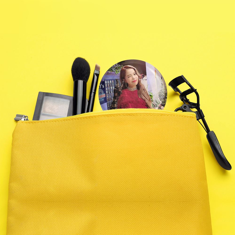 آینه های جیبی سولار گروه مامامو Mamamoo خندالو دایره ای به قطر 7.5 سانتی متر می باشد که نه خیلی بزرگ و غیر قابل استفاده در کیف آرایشی ست و نه خیلی کوچک که تصویر خاصی در آن مشاهده نشود. سایزی استاندارد و کارآمد دارد و مناسب قرار گیری در کیف لوازم آرایش و کیف های کوچک دستی نیز هست.