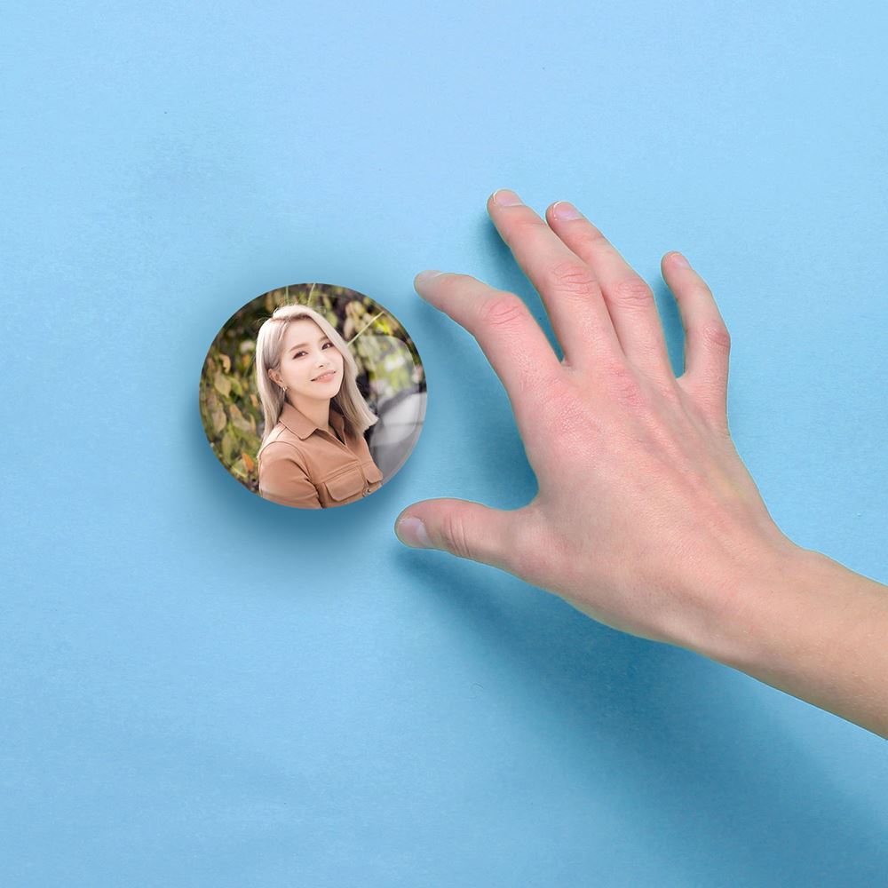آینه های جیبی سولار گروه مامامو Mamamoo خندالو دایره ای به قطر 7.5 سانتی متر می باشد که نه خیلی بزرگ و غیر قابل استفاده در کیف آرایشی ست و نه خیلی کوچک که تصویر خاصی در آن مشاهده نشود. سایزی استاندارد و کارآمد دارد و مناسب قرار گیری در کیف لوازم آرایش و کیف های کوچک دستی نیز هست.