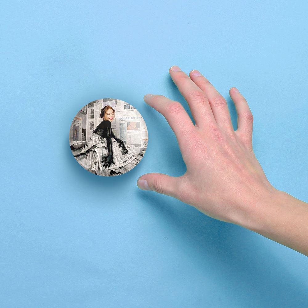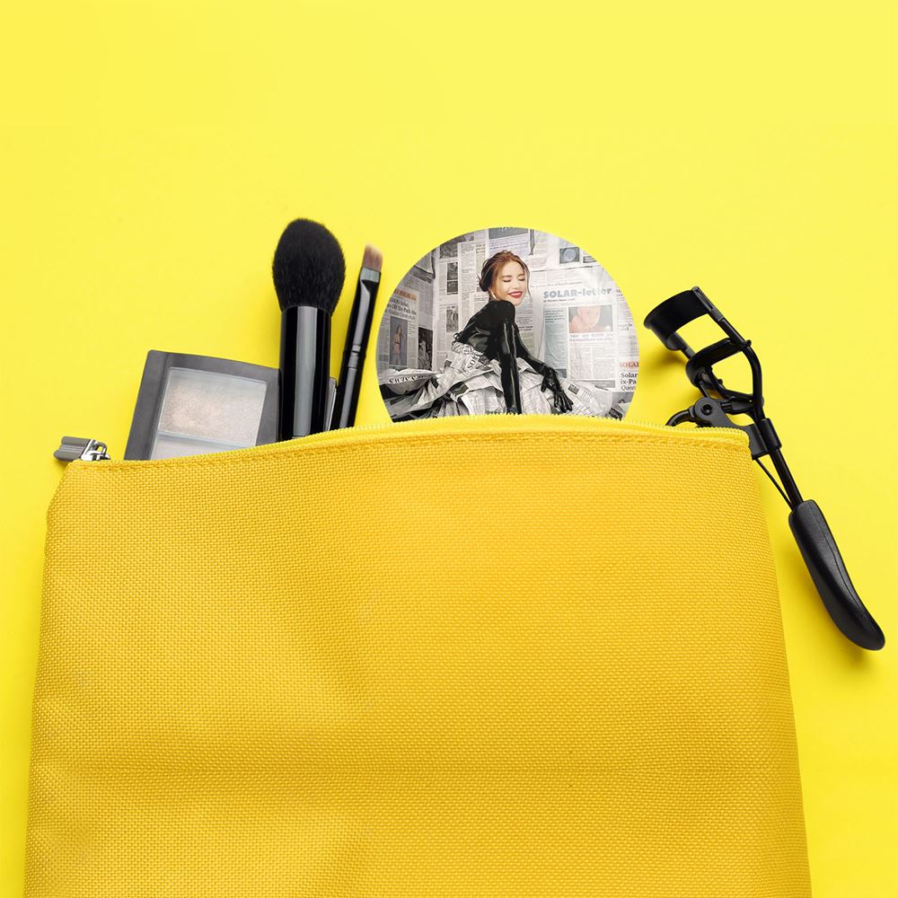 آینه های جیبی سولار گروه مامامو Mamamoo خندالو دایره ای به قطر 7.5 سانتی متر می باشد که نه خیلی بزرگ و غیر قابل استفاده در کیف آرایشی ست و نه خیلی کوچک که تصویر خاصی در آن مشاهده نشود. سایزی استاندارد و کارآمد دارد و مناسب قرار گیری در کیف لوازم آرایش و کیف های کوچک دستی نیز هست.
