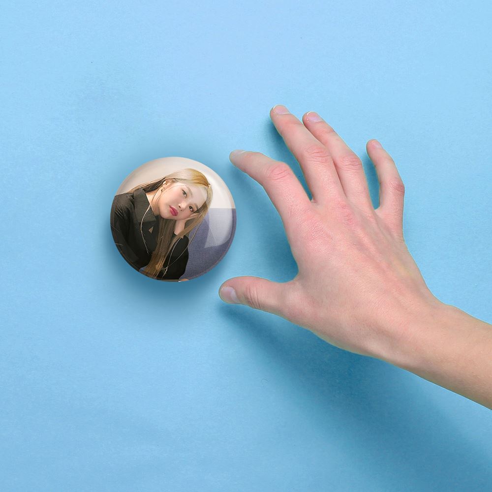 آینه های جیبی سولار گروه مامامو Mamamoo خندالو دایره ای به قطر 7.5 سانتی متر می باشد که نه خیلی بزرگ و غیر قابل استفاده در کیف آرایشی ست و نه خیلی کوچک که تصویر خاصی در آن مشاهده نشود. سایزی استاندارد و کارآمد دارد و مناسب قرار گیری در کیف لوازم آرایش و کیف های کوچک دستی نیز هست.