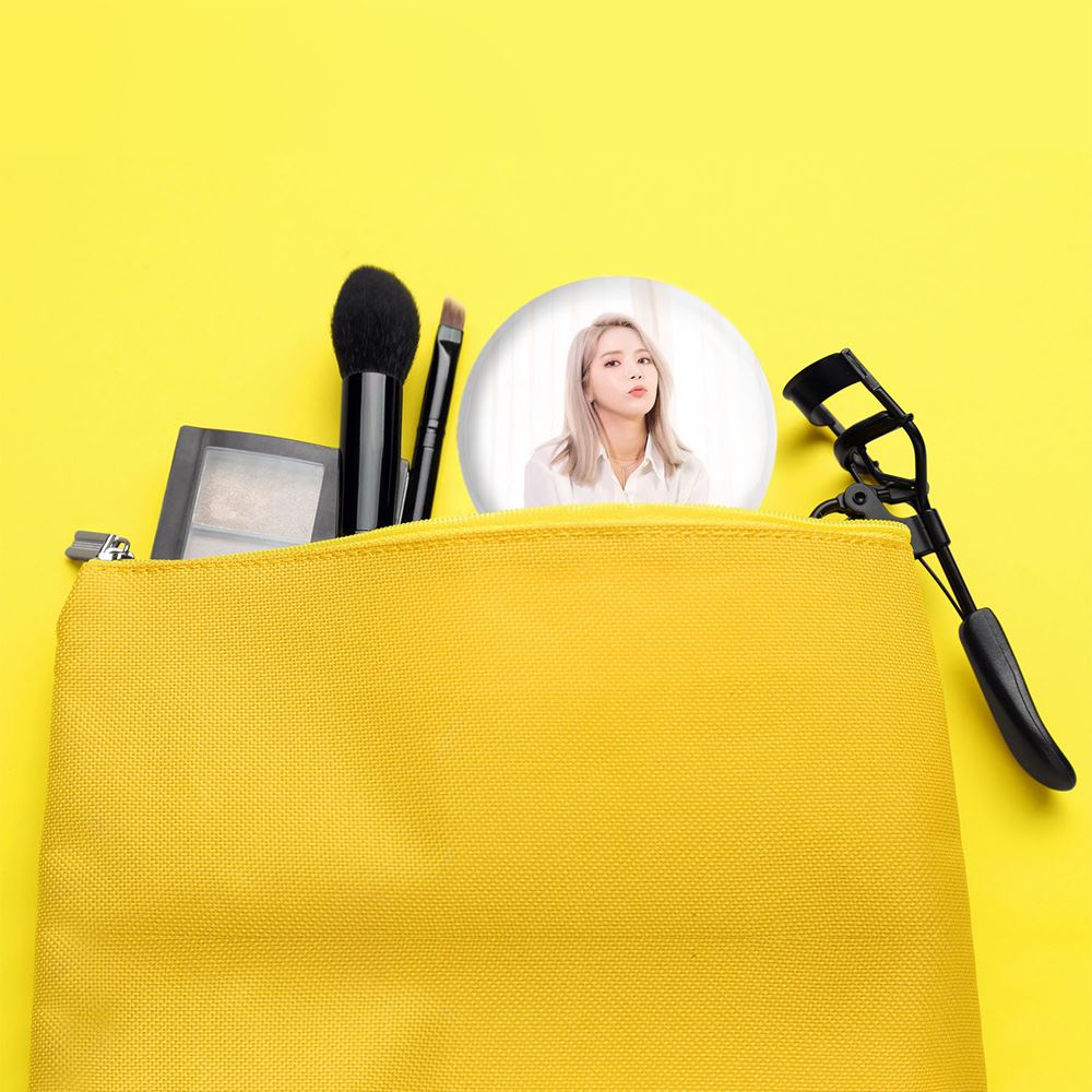آینه های جیبی سولار گروه مامامو Mamamoo خندالو دایره ای به قطر 7.5 سانتی متر می باشد که نه خیلی بزرگ و غیر قابل استفاده در کیف آرایشی ست و نه خیلی کوچک که تصویر خاصی در آن مشاهده نشود. سایزی استاندارد و کارآمد دارد و مناسب قرار گیری در کیف لوازم آرایش و کیف های کوچک دستی نیز هست.