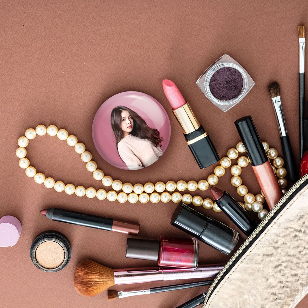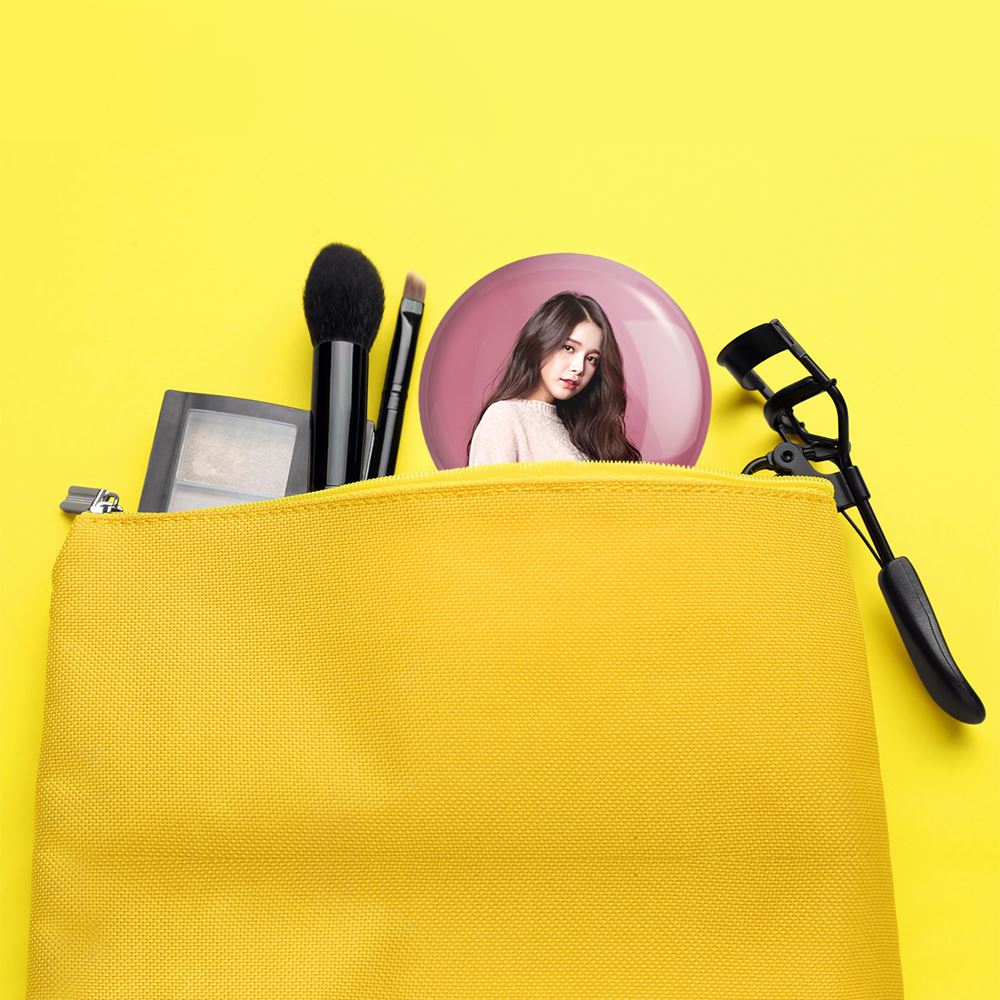 آینه های جیبی سولار گروه مامامو Mamamoo خندالو دایره ای به قطر 7.5 سانتی متر می باشد که نه خیلی بزرگ و غیر قابل استفاده در کیف آرایشی ست و نه خیلی کوچک که تصویر خاصی در آن مشاهده نشود. سایزی استاندارد و کارآمد دارد و مناسب قرار گیری در کیف لوازم آرایش و کیف های کوچک دستی نیز هست.