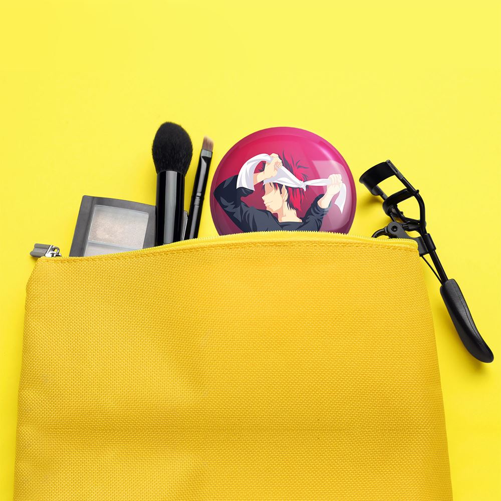 آینه های جیبی سوما انیمه جنگ غذاها Food Wars خندالو دایره ای به قطر 7.5 سانتی متر می باشد که نه خیلی بزرگ و غیر قابل استفاده در کیف آرایشی ست و نه خیلی کوچک که تصویر خاصی در آن مشاهده نشود. سایزی استاندارد و کارآمد دارد و مناسب قرار گیری در کیف لوازم آرایش و کیف های کوچک دستی نیز هست. بدنه ی آینه جیبی سوما انیمه جنگ غذاها Food Wars در قسمتی که آینه را در بر گرفته فلزی بوده و ظاهر براق و بسیار زیبایی دارد. چاپ طرح در پشت آینه بوسیله چاپگرهای دیجیتال شش رنگ با شفافیت و کیفیتی مثال زدنی انجام گرفته و با روکش لمینت حرارتی پوشیده شده که در مقابل آسیب و خط و خش مقاوم بوده و کیفیت بالایی دارد. آینه های جیبی سوما انیمه جنگ غذاها Food Wars خندالو با تنوع طرحی بسیار بالا، سلیقه هر نوع مخاطبی را تامین میکند.