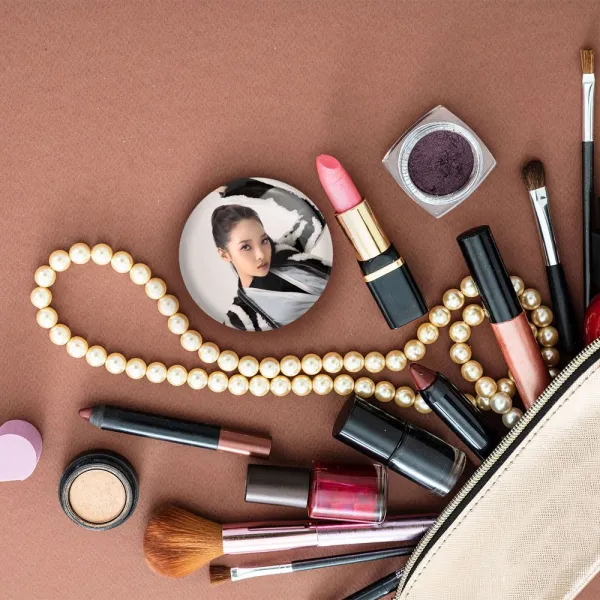 آینه های جیبی سومین گروه کارد Kard خندالو دایره ای به قطر 7.5 سانتی متر می باشد که نه خیلی بزرگ و غیر قابل استفاده در کیف آرایشی ست و نه خیلی کوچک که تصویر خاصی در آن مشاهده نشود. سایزی استاندارد و کارآمد دارد و مناسب قرار گیری در کیف لوازم آرایش و کیف های کوچک دستی نیز هست.