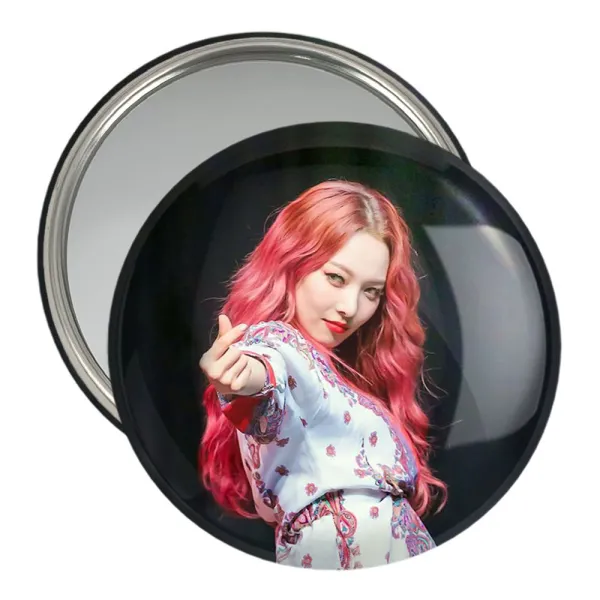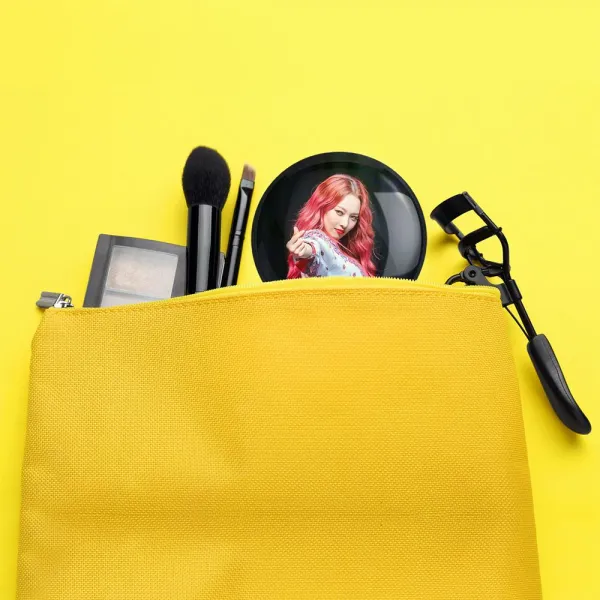 آینه های جیبی سومین گروه کارد Kard خندالو دایره ای به قطر 7.5 سانتی متر می باشد که نه خیلی بزرگ و غیر قابل استفاده در کیف آرایشی ست و نه خیلی کوچک که تصویر خاصی در آن مشاهده نشود. سایزی استاندارد و کارآمد دارد و مناسب قرار گیری در کیف لوازم آرایش و کیف های کوچک دستی نیز هست.