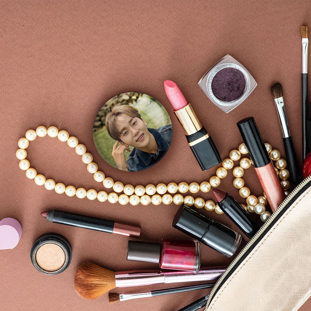 آینه های جیبی سونگ کوان گروه سونتین Seventeen خندالو دایره ای به قطر 7.5 سانتی متر می باشد که نه خیلی بزرگ و غیر قابل استفاده در کیف آرایشی ست و نه خیلی کوچک که تصویر خاصی در آن مشاهده نشود. سایزی استاندارد و کارآمد دارد و مناسب قرار گیری در کیف لوازم آرایش و کیف های کوچک دستی نیز هست.