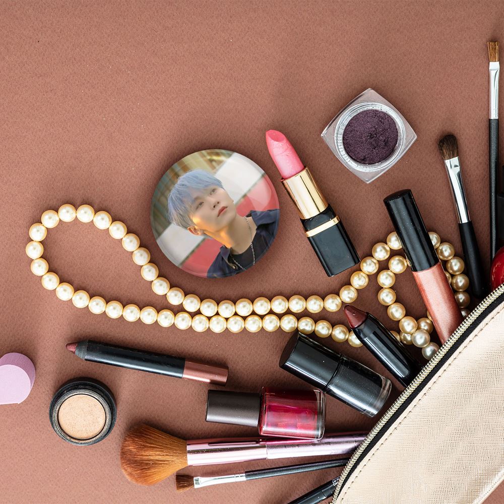 آینه های جیبی سونگ کوان گروه سونتین Seventeen خندالو دایره ای به قطر 7.5 سانتی متر می باشد که نه خیلی بزرگ و غیر قابل استفاده در کیف آرایشی ست و نه خیلی کوچک که تصویر خاصی در آن مشاهده نشود. سایزی استاندارد و کارآمد دارد و مناسب قرار گیری در کیف لوازم آرایش و کیف های کوچک دستی نیز هست.