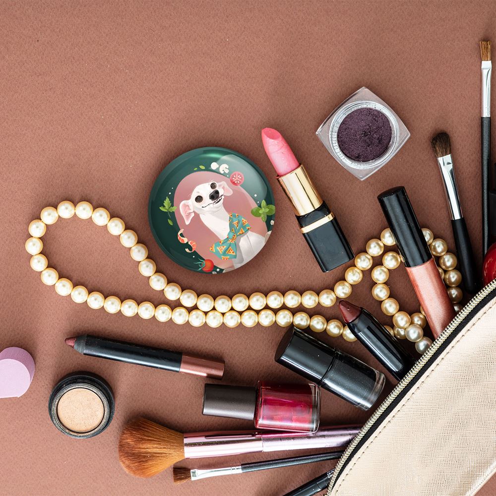 آینه های جیبی سگ خندالو دایره ای به قطر 7.5 سانتی متر می باشد که نه خیلی بزرگ و غیر قابل استفاده در کیف آرایشی ست و نه خیلی کوچک که تصویر خاصی در آن مشاهده نشود. سایزی استاندارد و کارآمد دارد و مناسب قرار گیری در کیف لوازم آرایش و کیف های کوچک دستی نیز هست.