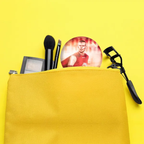 آینه های جیبی سید جلال حسینی پرسپولیس خندالو دایره ای به قطر 7.5 سانتی متر می باشد که نه خیلی بزرگ و غیر قابل استفاده در کیف آرایشی ست و نه خیلی کوچک که تصویر خاصی در آن مشاهده نشود. سایزی استاندارد و کارآمد دارد و مناسب قرار گیری در کیف لوازم آرایش و کیف های کوچک دستی نیز هست.