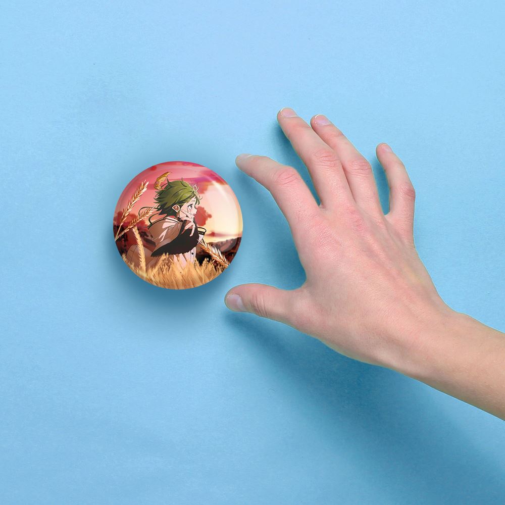 آینه های جیبی سیلفیت انیمه موشوکو تنسی خندالو دایره ای به قطر 7.5 سانتی متر می باشد که نه خیلی بزرگ و غیر قابل استفاده در کیف آرایشی ست و نه خیلی کوچک که تصویر خاصی در آن مشاهده نشود. سایزی استاندارد و کارآمد دارد و مناسب قرار گیری در کیف لوازم آرایش و کیف های کوچک دستی نیز هست.