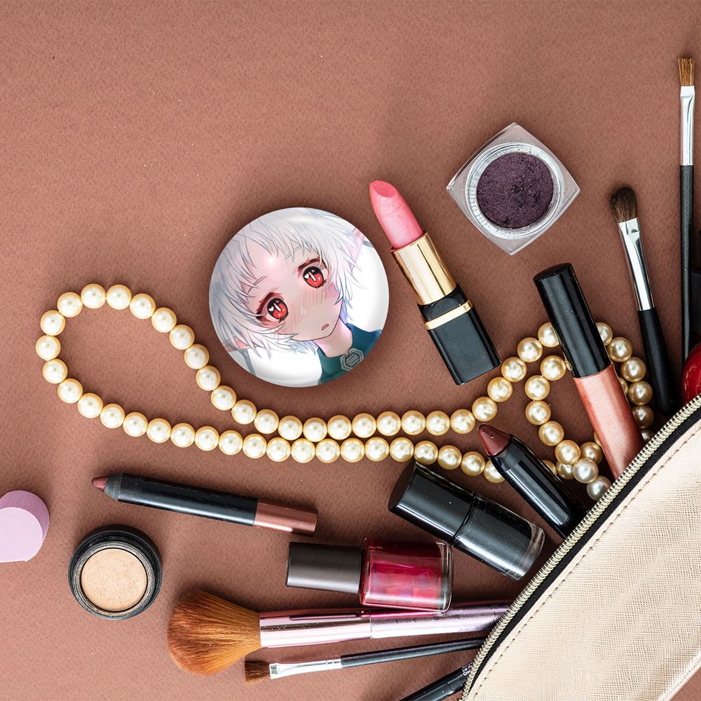 آینه های جیبی سیلفیت انیمه موشوکو تنسی خندالو دایره ای به قطر 7.5 سانتی متر می باشد که نه خیلی بزرگ و غیر قابل استفاده در کیف آرایشی ست و نه خیلی کوچک که تصویر خاصی در آن مشاهده نشود. سایزی استاندارد و کارآمد دارد و مناسب قرار گیری در کیف لوازم آرایش و کیف های کوچک دستی نیز هست. بدنه ی آینه جیبی سیلفیت انیمه موشوکو تنسی در قسمتی که آینه را در بر گرفته فلزی بوده و ظاهر براق و بسیار زیبایی دارد. چاپ طرح در پشت آینه بوسیله چاپگرهای دیجیتال شش رنگ با شفافیت و کیفیتی مثال زدنی انجام گرفته و با روکش لمینت حرارتی پوشیده شده که در مقابل آسیب و خط و خش مقاوم بوده و کیفیت بالایی دارد. آینه های جیبی سیلفیت انیمه موشوکو تنسی خندالو با تنوع طرحی بسیار بالا، سلیقه هر نوع مخاطبی را تامین میکند.