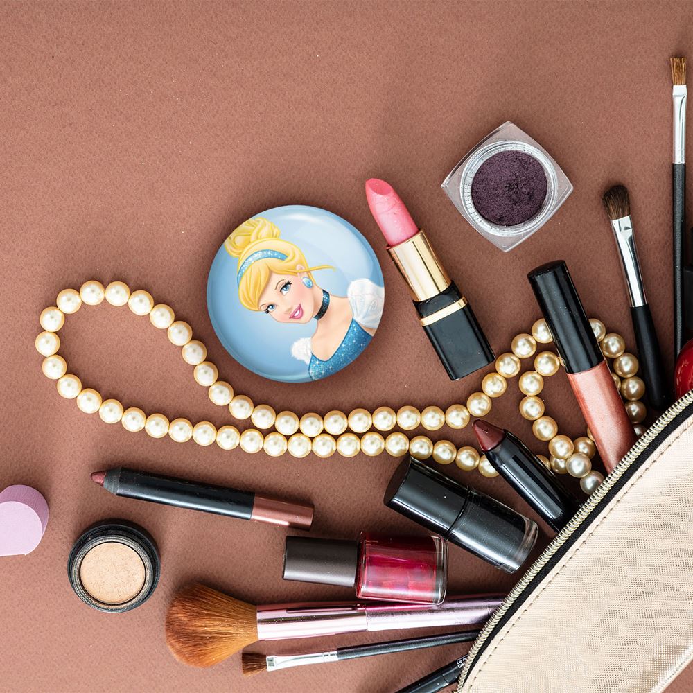 آینه های جیبی سیندرلا Cinderella خندالو دایره ای به قطر 7.5 سانتی متر می باشد که نه خیلی بزرگ و غیر قابل استفاده در کیف آرایشی ست و نه خیلی کوچک که تصویر خاصی در آن مشاهده نشود. سایزی استاندارد و کارآمد دارد و مناسب قرار گیری در کیف لوازم آرایش و کیف های کوچک دستی نیز هست.