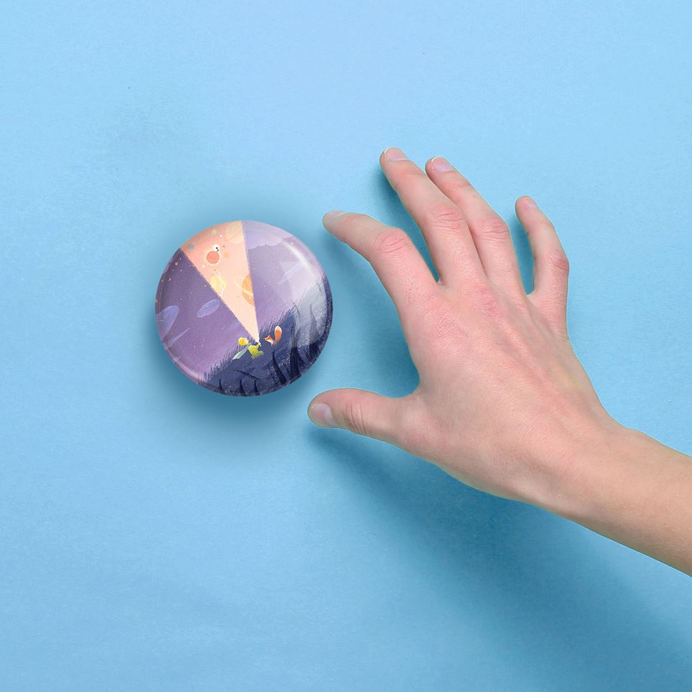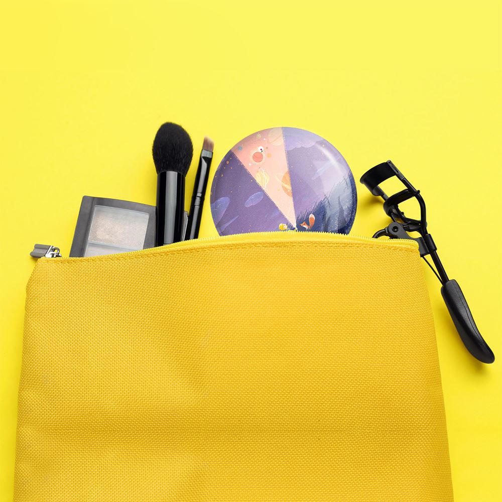 آینه های جیبی شازده کوچولو خندالو دایره ای به قطر 7.5 سانتی متر می باشد که نه خیلی بزرگ و غیر قابل استفاده در کیف آرایشی ست و نه خیلی کوچک که تصویر خاصی در آن مشاهده نشود. سایزی استاندارد و کارآمد دارد و مناسب قرار گیری در کیف لوازم آرایش و کیف های کوچک دستی نیز هست.