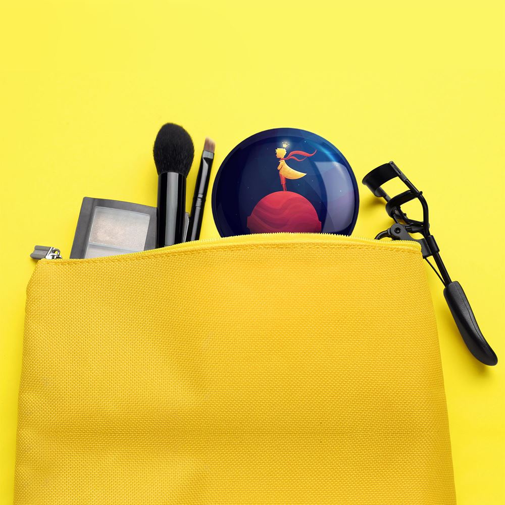 آینه های جیبی شازده کوچولو خندالو دایره ای به قطر 7.5 سانتی متر می باشد که نه خیلی بزرگ و غیر قابل استفاده در کیف آرایشی ست و نه خیلی کوچک که تصویر خاصی در آن مشاهده نشود. سایزی استاندارد و کارآمد دارد و مناسب قرار گیری در کیف لوازم آرایش و کیف های کوچک دستی نیز هست.